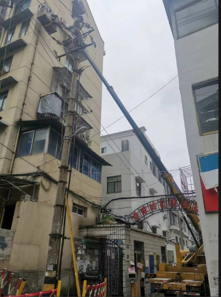 高空作业车更换路灯施工现场