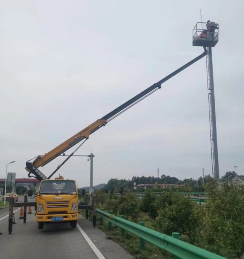 22米载人登高车检修交通指示灯施工…